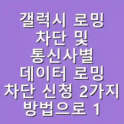 갤럭시 로밍 차단 설정 및 기기 내 데이터 관리 전략