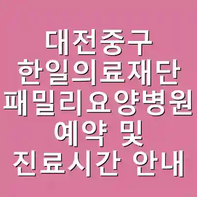 대전중구의 한일의료재단 패밀리요양병원은 가족 중심의 케어를 제공하는 곳으로, 예약 과정과 진료 시간을 숙지해두면 보다 효과적으로 이용할 수 있습니다. 본 글을 통해 제공된 정보들이 독자 여러분에게 유용하게 사용되길 바랍니다.