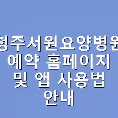 청주서원요양병원 예약 홈페이지 및 앱 사용법