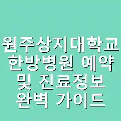 강원원주상지대학교부속 한방병원 예약 및 진료정보 완벽 가이드