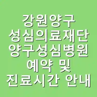 강원양구 성심의료재단 양구성심병원은 지역 내에서 의료 서비스를 제공하는 중요한 기관으로, 환자들에게 다양한 전문 진료를 제공합니다. 예약 방법과 진료시간에 대한 유용한 정보를 제공하여, 방문 예정인 분들이 보다 쉽게 병원을 이용할 수 있도록 돕고자 합니다. 이 글을 통해 병원 예약 절차, 진료 시간, 전문의 정보 및 2025년 공휴일 진료 관련 내용을 확인할 수 있습니다.