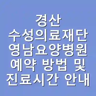 경산 수성의료재단 영남요양병원은 지역 주민들 뿐만 아니라 인근 지역 환자들에게도 중요한 의료 서비스를 제공하고 있습니다. 본 병원은 요양병원으로, 만성 질환이나 수술 후 회복을 위한 전문적인 치료와 간호를 제공합니다. 예약 방법과 진료시간, 그리고 전문의 추천 정보는 환자 및 보호자에게 매우 중요한 요소입니다. 이 글에서는 영남요양병원의 예약 방법과 진료시간을 포함한 다양한 정보를 상세히 안내하여, 독자 여러분이 필요로 하는 정보를 제공합니다.