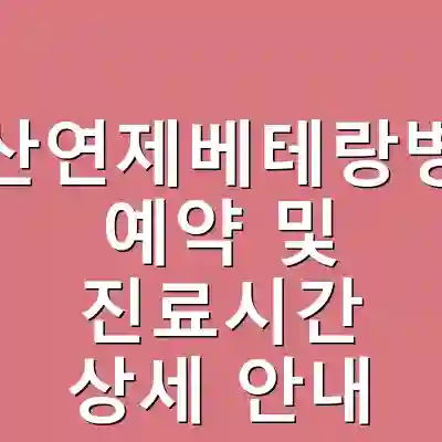 부산연제베테랑병원 예약 및 진료시간 상세 안내