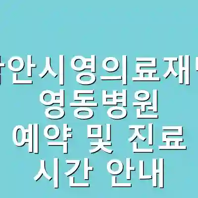 함안시영의료재단 영동병원은 환자에게 신뢰할 수 있는 의료 서비스를 제공하기 위해 다양한 진료과목과 전문의가 있는 의료기관입니다. 이 글에서는 영동병원의 예약 방법, 진료 시간, 전문의 추천, 그리고 일요일 및 공휴일 진료에 대한 정보를 자세히 안내합니다. 이를 통해 병원의 이용이 보다 수월하고 효율적으로 이루어질 수 있도록 도와드릴 것입니다. 이 글을 통해 영동병원 이용 시 필요한 모든 정보를 손쉽게 얻어가실 수 있습니다.